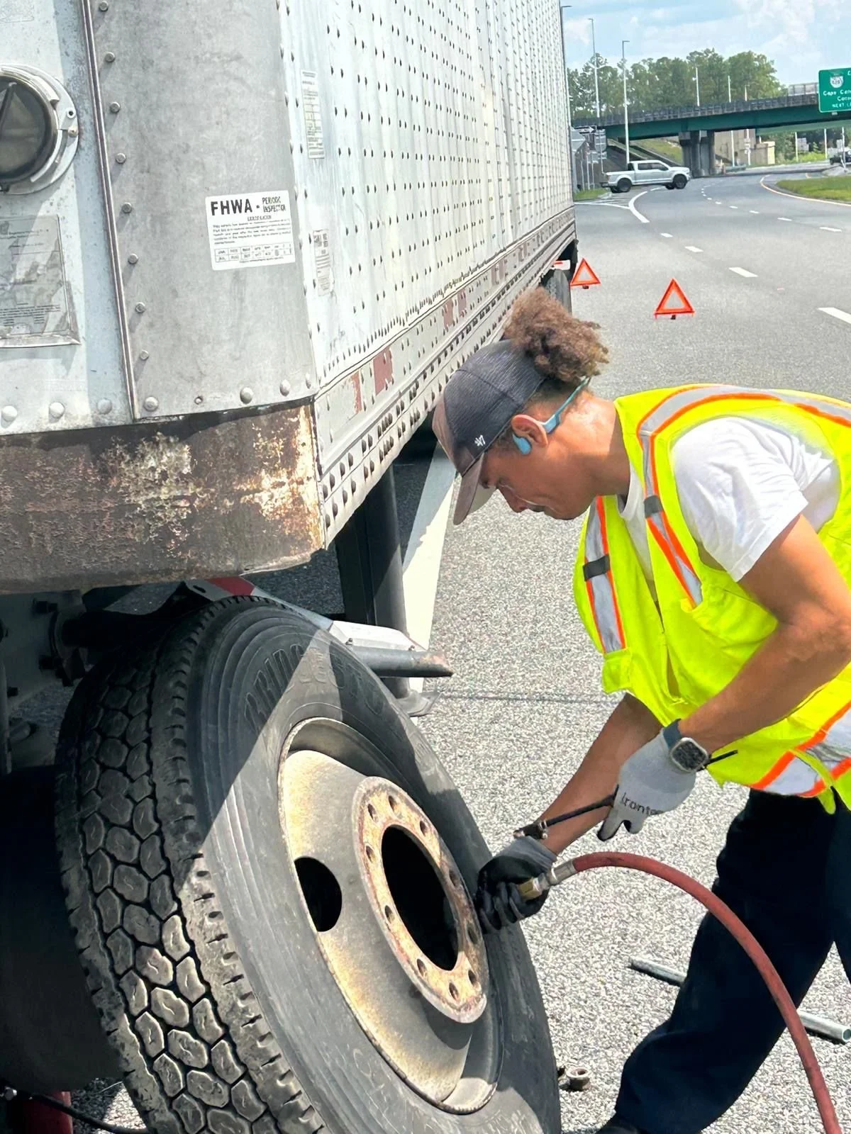 When your truck is stuck, your business is losing time and revenue. Our 24/7 emergency truck road service delivers rapid tire replacement, blowout response, jump starts, and roadside support for box trucks, semis, delivery fleets, and work vehicles.